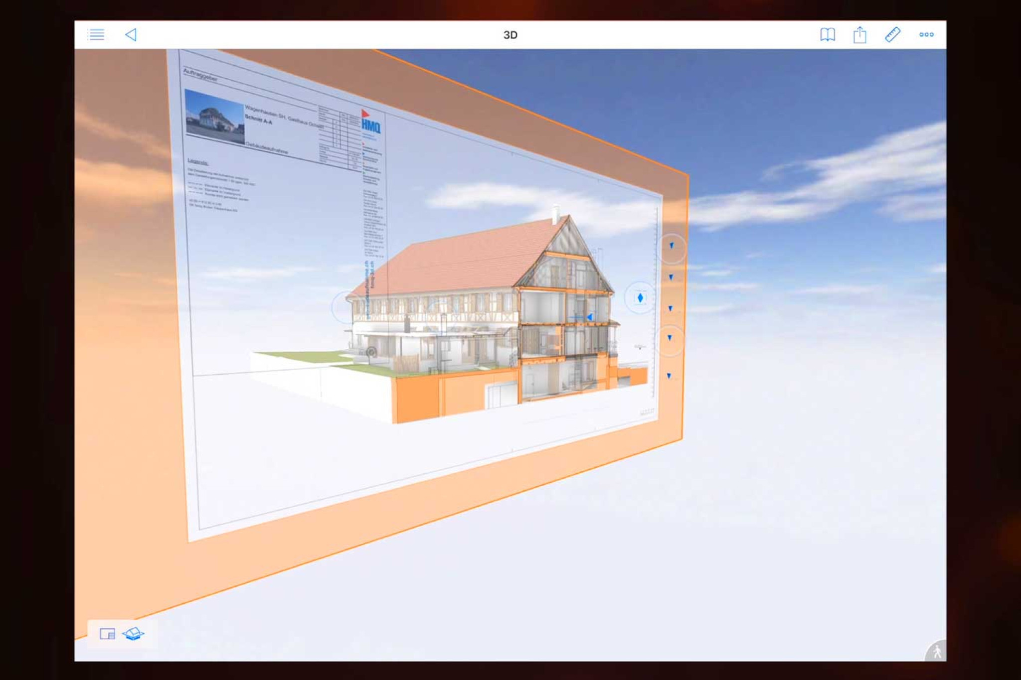 L'avantage de BIMx est que les modèles 3D ne sont plus liés à un ordinateur de bureau, mais peuvent être présentés partout, que ce soit sur le chantier, dans la salle de réunion ou lors d'une discussion avec le maître d'ouvrage, de manière mobile et simple sur une tablette ou un smartphone. Les modèles 3D BIMx de HMQ AG sont donc très utiles lors des réunions d'équipe ou avec le maître d'ouvrage.