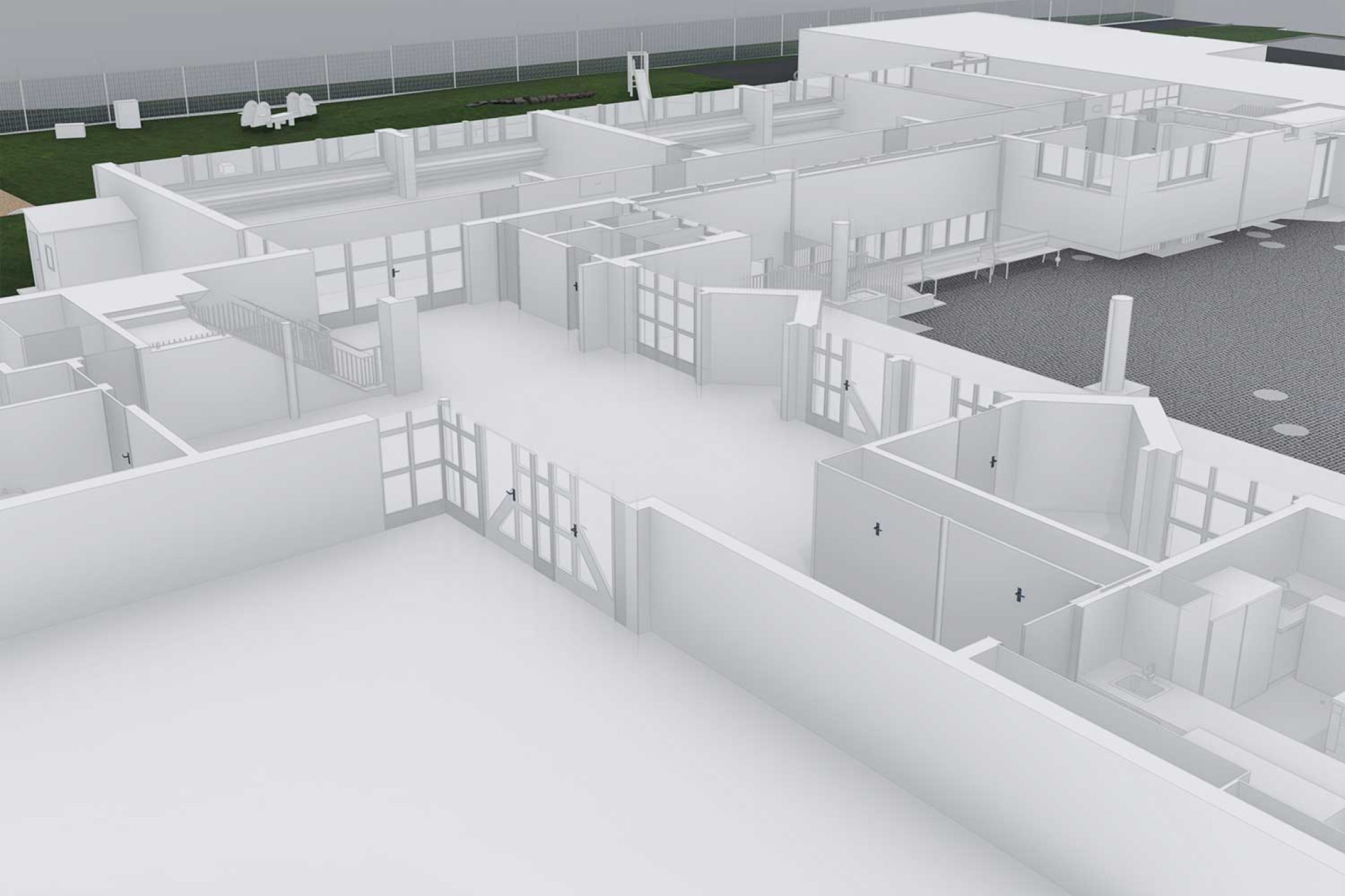 À la demande de Hubatka Peyer Architektur AG, HMQ AG a mesuré l'école de Wagen SG à l'aide d'un scanner laser 3D. À partir du relevé du bâtiment, un modèle 3D complet a été modélisé dans ArchiCAD. Outre la modélisation 3D de l'école, les environs ont également été relevés et traités sous forme de modèle numérique de terrain (MNT).