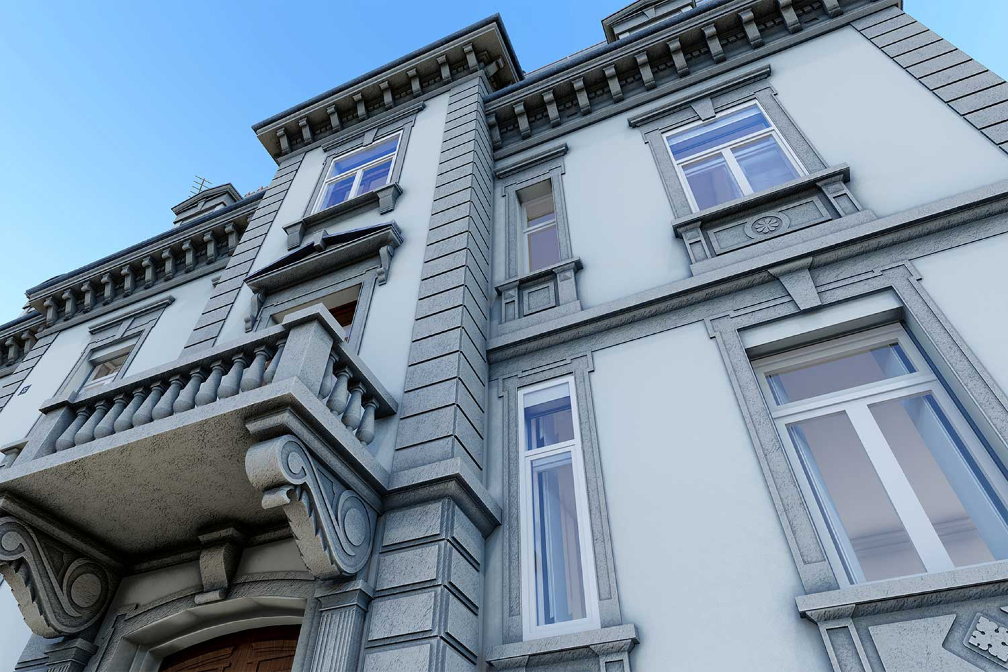 La société HMQ AG a réalisé un relevé du bâtiment de la Villa Wiesental à Saint-Gall à l'aide d'un scanner laser 3D. À partir du nuage de points, un jumeau numérique exact du bâtiment a été modélisé en 3D dans ArchiCAD avec un niveau de détail LOD 1:20, conformément aux spécifications HMQ. Les lambris, les boiseries murales et les moulures des plafonds ont été évalués avec un niveau de détail accru et les façades ont été évaluées conformément à la pierre. La Villa Wiesental a été construite à la fin du XIXe siècle et est inscrite à l'inventaire des bâtiments dignes de protection du canton de Saint-Gall.
