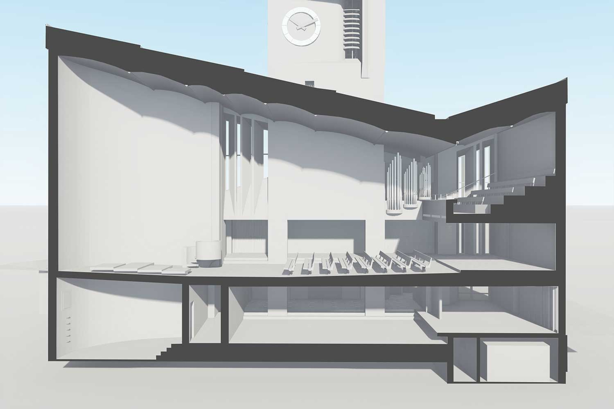 À la demande de TSAP AG Architekten + Planer, HMQ AG a modélisé en 3D l'église réformée d'Urtenen (BE) à partir d'un relevé du bâtiment. L'église d'Urtenen est une église réformée qui domine le village grâce à son architecture originale, marquante et moderne.
