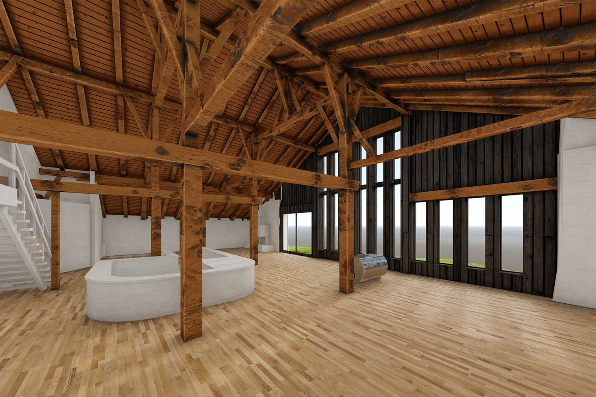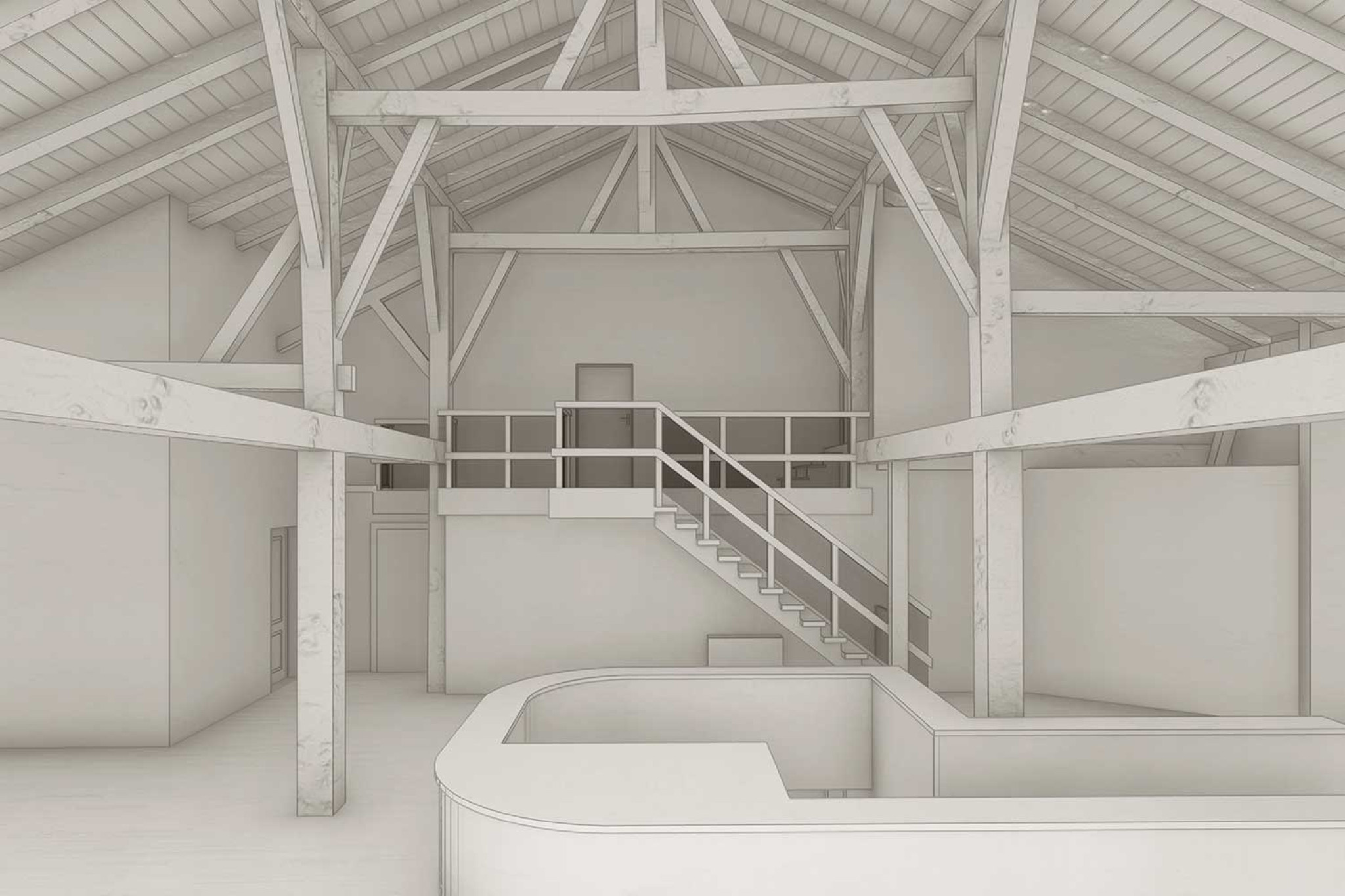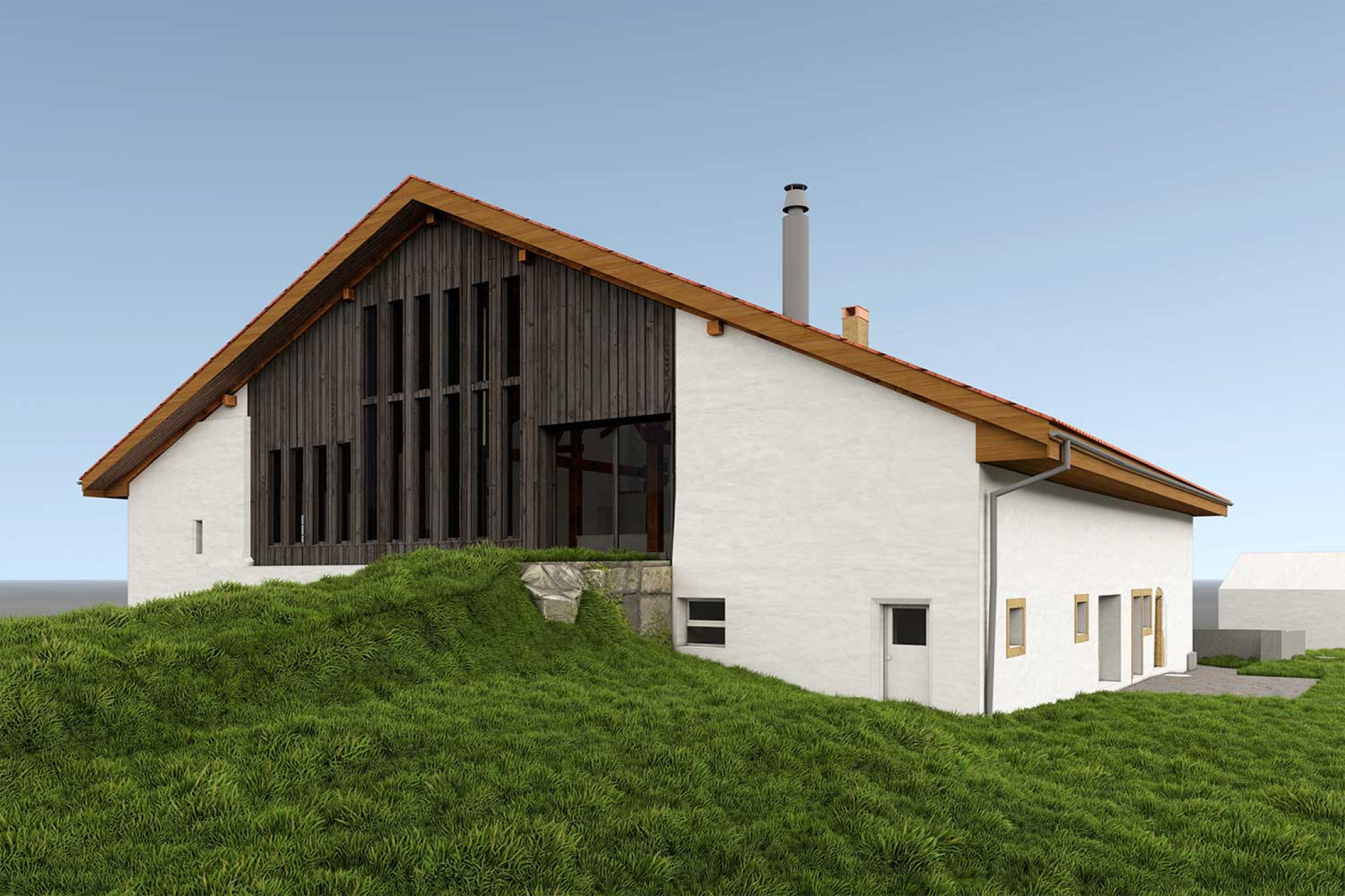 La société HMQ AG a réalisé le relevé d'une ferme à La Chaux-des-Breuleux, dans le canton du Jura. Le relevé du bâtiment a été effectué à l'aide d'un scanner laser 3D. À partir du nuage de points, un modèle 3D fidèle à la réalité a été modélisé dans ArchiCAD.