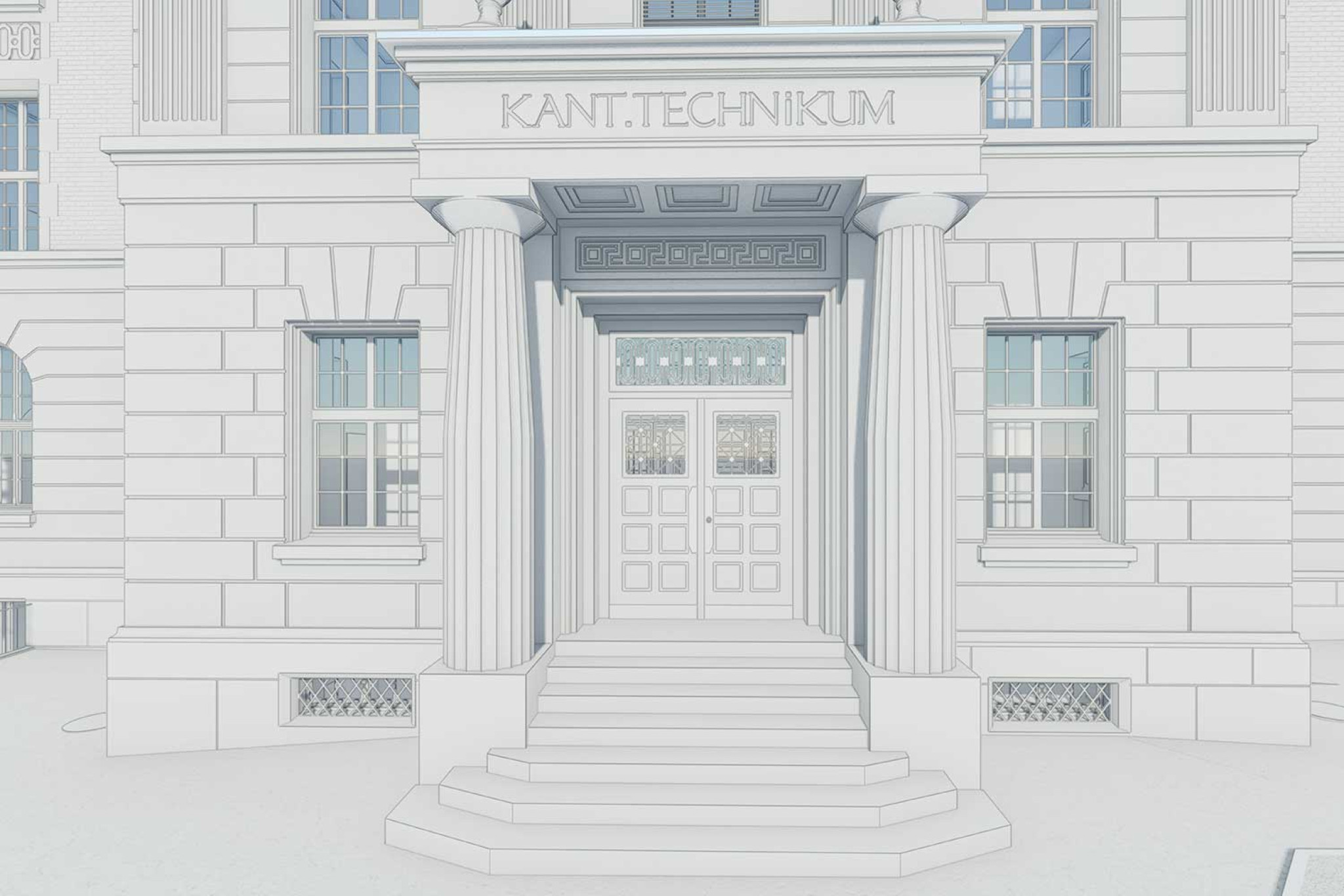 La société HMQ AG a mesuré l'école d'ingénieurs de Burgdorf à l'aide d'un scanner laser 3D. Le nuage de points ainsi enregistré a servi de base à la modélisation avec ArchiCAD. Les façades ont été modélisées avec un niveau de détail (LOD) de 1:20. Le modèle 3D, qui tient compte non seulement de la structure du bâtiment, mais aussi des conduites, a été fourni dans différents formats : fichier ArchiCAD, fichier IFC pour l'échange universel de données et format BIMx. Le format BIMx offre en outre une possibilité gratuite et conviviale de visualiser le modèle de manière interactive.