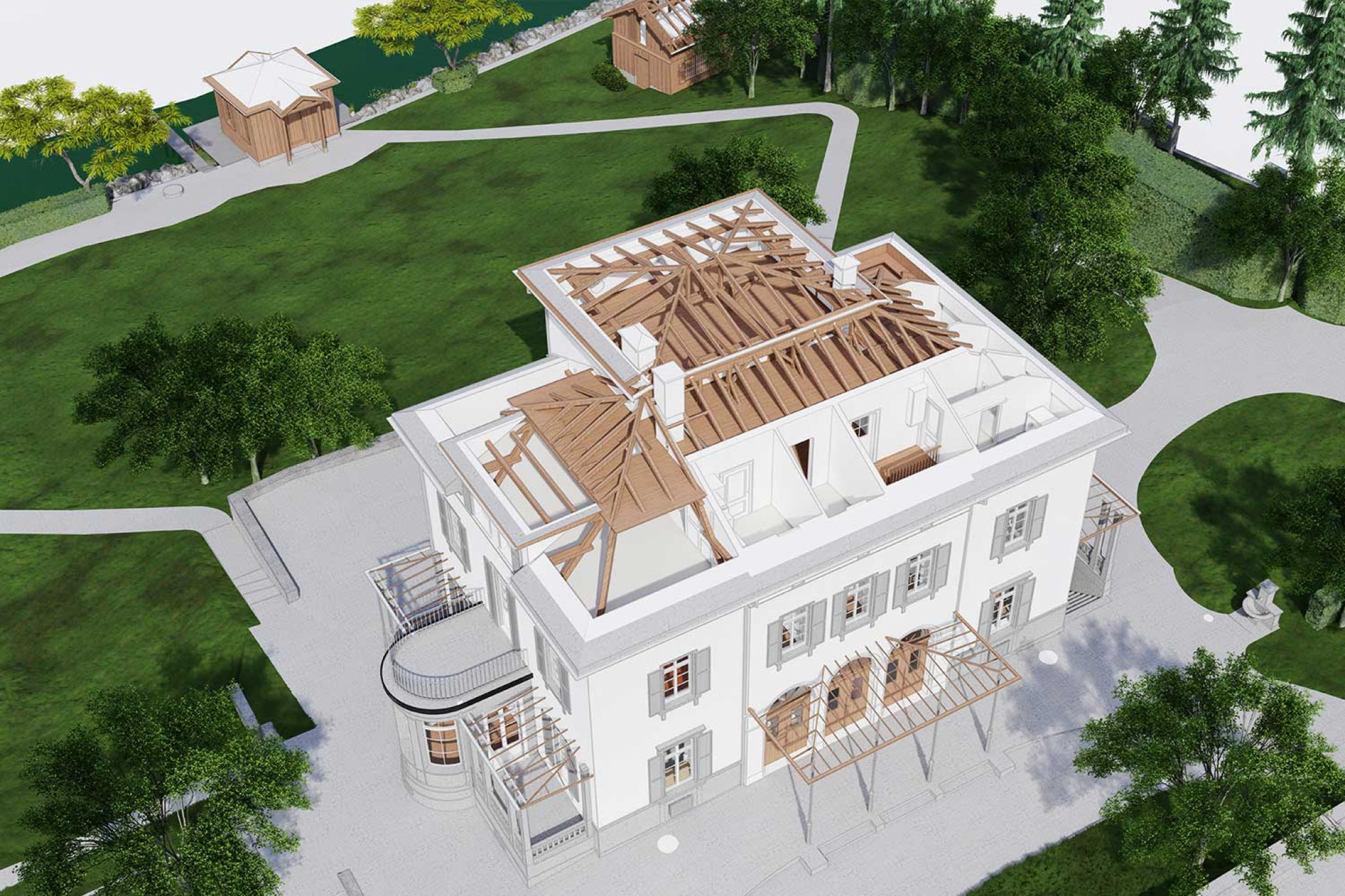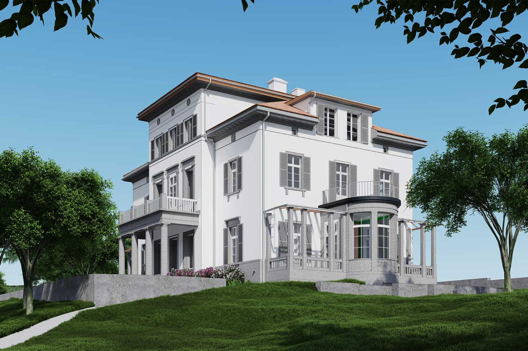 La société HMQ AG a créé un modèle 3D détaillé d'une villa au bord du lac à Zoug à l'aide d'un scanner laser 3D. La maison principale, la buanderie, les bains, le garage et les environs, y compris l'emplacement des arbres, ont été enregistrés. À partir du nuage de points, un modèle 3D compatible BIM a été modélisé avec un niveau de détail LOD 1:20, dans lequel les lambris, les boiseries murales et les moulures des plafonds ont été évalués en détail. Les rampes et les marches d'escalier ont également été enregistrées avec précision. Les données ont été fournies sous forme de fichier ArchiCAD et au format IFC. Elles peuvent être utilisées pour la planification et l'analyse détaillée, par exemple dans le cadre de restaurations ou de rénovations.
