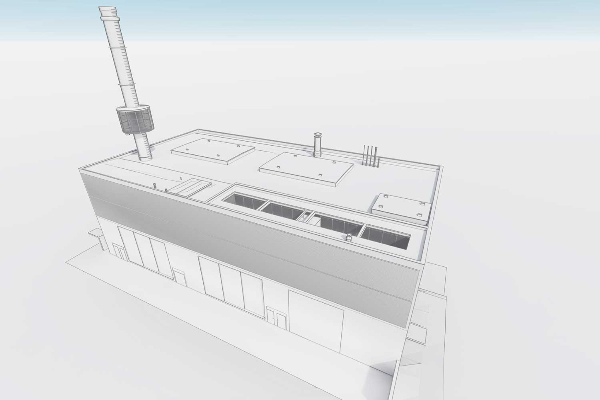 La société HMQ AG a mesuré la centrale énergétique de Dättwil à l'aide d'un scanner laser 3D et a créé un modèle 3D détaillé avec ArchiCAD à partir des données collectées. Outre la saisie précise de l'enveloppe du bâtiment et de la structure porteuse, toutes les installations techniques, y compris les conduites, les tuyaux et les chemins de câbles, ont également été entièrement modélisées en 3D. Le modèle 3D constitue une base précise pour les analyses techniques et les planifications futures.