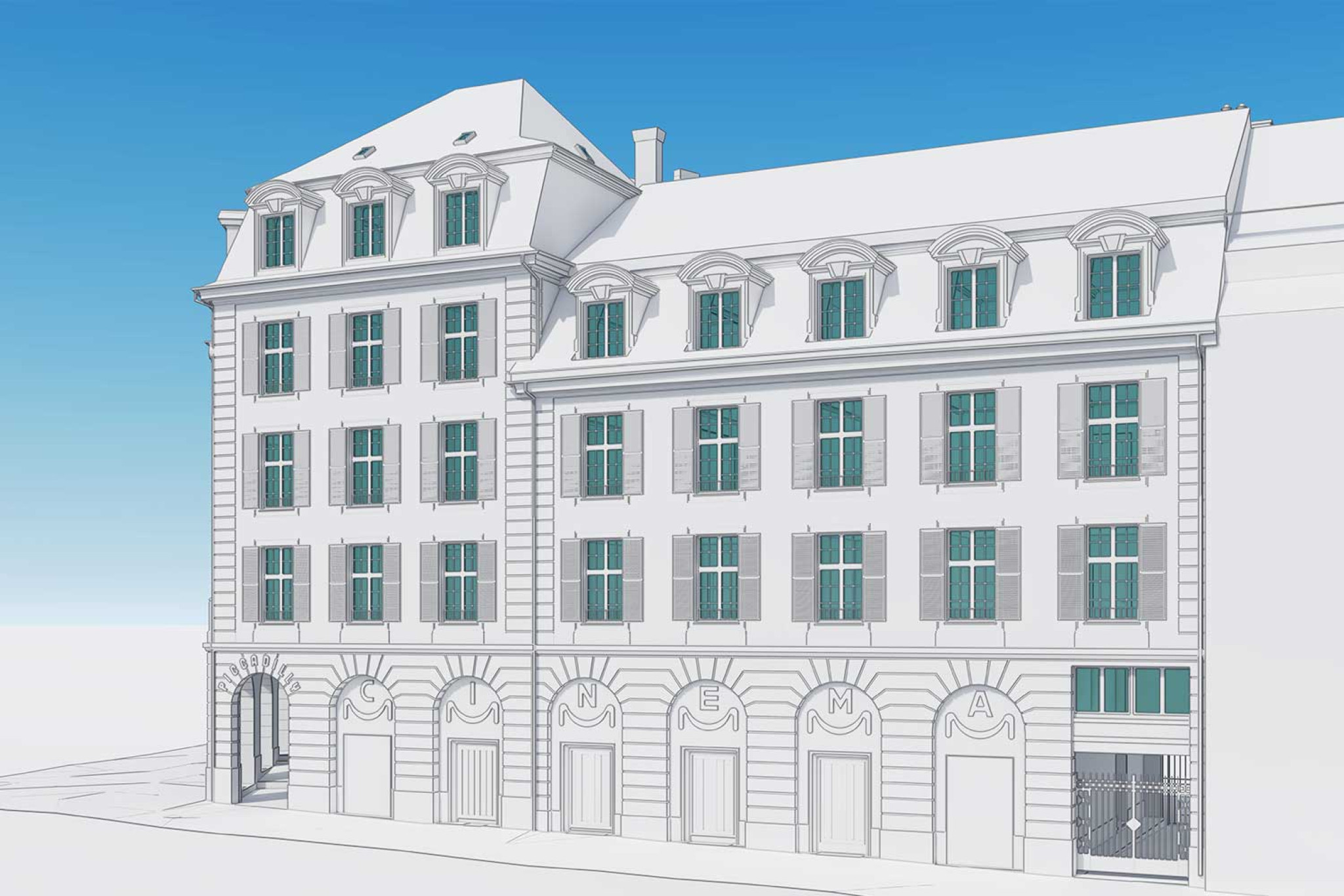 La société HMQ AG a créé à Zurich un modèle 3D complet d'un immeuble résidentiel et commercial comprenant un restaurant et un cinéma. Grâce à un balayage laser 3D précis, un nuage de points détaillé a été mesuré, qui a servi de base à la modélisation. Tous les étages et toutes les façades ont été enregistrés afin de créer un jumeau numérique complet. Le modèle a été fourni sous forme de fichier ArchiCAD et IFC et peut être réutilisé immédiatement dans le processus de modélisation des informations du bâtiment (BIM).