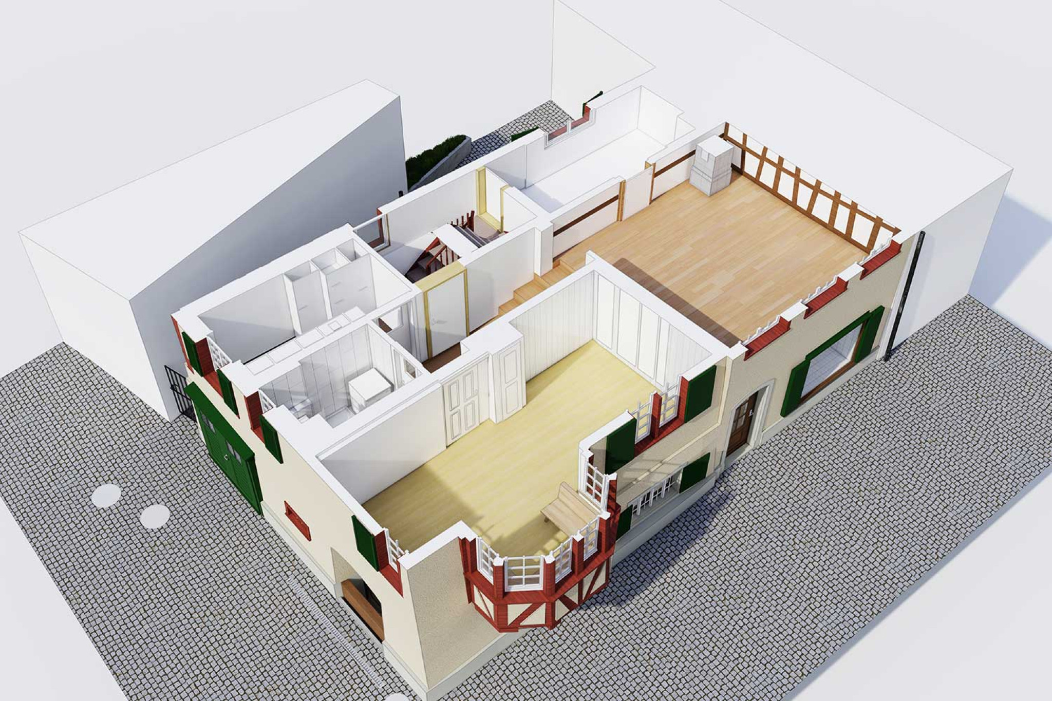 À Stein am Rhein, ville connue pour ses maisons à colombages médiévales préservées, HMQ AG a mesuré une maison à colombages à l'aide d'un scanner laser 3D. À partir du nuage de points, un modèle 3D précis a été créé au niveau de détail (LOD) 1:20, qui reproduit fidèlement tous les éléments de construction et la structure caractéristique de la façade du bâtiment. Le jumeau numérique du bâtiment a été créé dans ArchiCAD et mis à disposition sous forme de fichier IFC pour la suite de la planification.