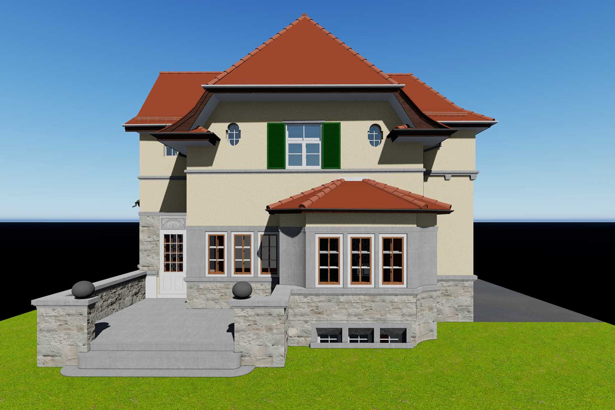 La société HMQ AG a réalisé un relevé de bâtiment à l'aide d'un scanner laser 3D pour une maison de maître située au bord du lac de Walenstadt et a élaboré un modèle CAO 3D complet dans ArchiCAD. La modélisation 3D a été réalisée en LOD 250 (niveau de détail) selon la norme HMQ. Certaines pièces « importantes » pour la conservation des monuments historiques ont également été modélisées avec des textures aux couleurs fidèles. La documentation des façades a en outre été réalisée à l'aide d'orthophotos haute résolution issues de prises de vue aériennes réalisées à partir d'un multicoptère.