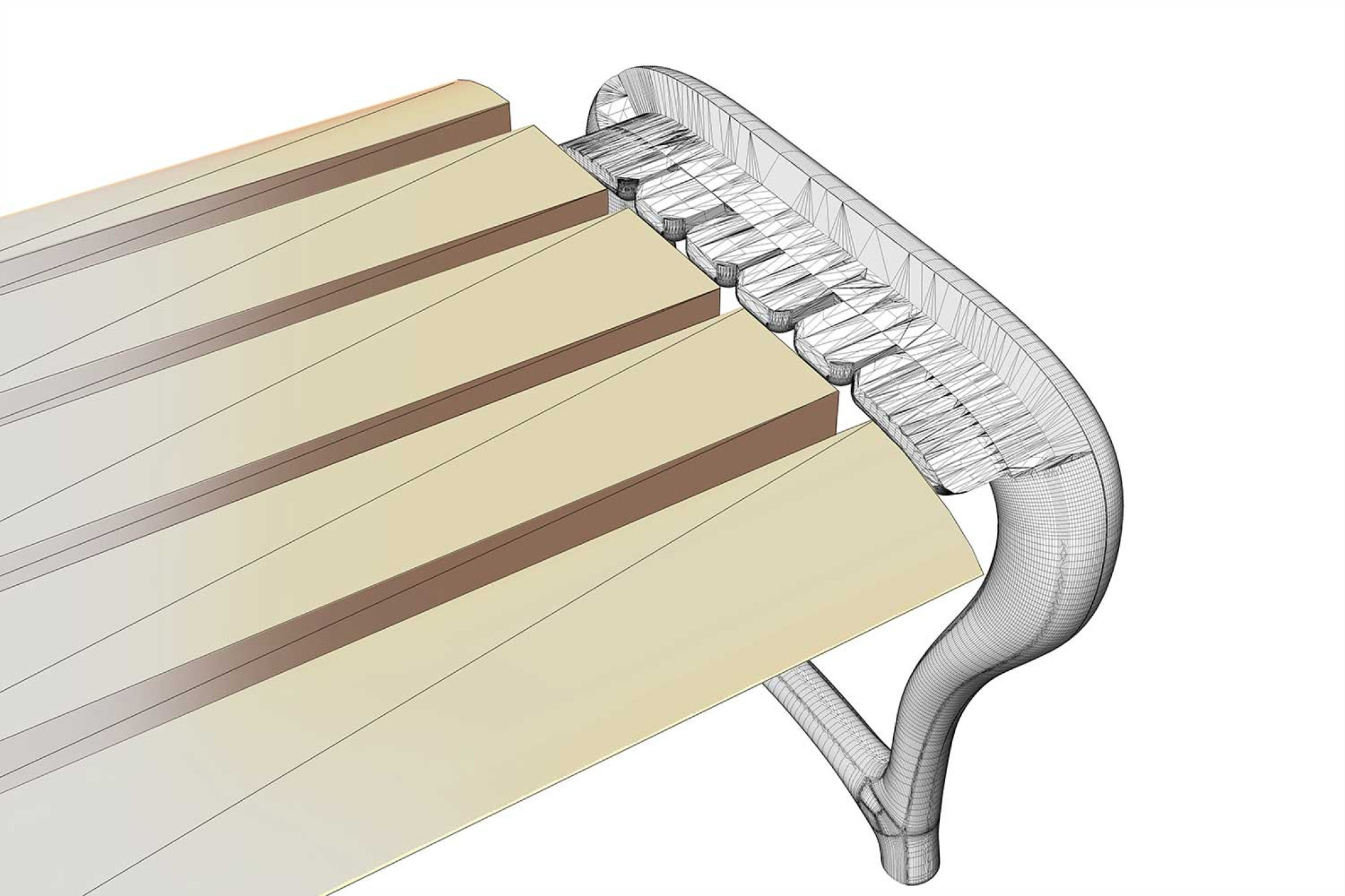 La société HMQ AG a numérisé au millimètre près deux éléments d'un banc en plâtre, un élément avec dossier et un élément sans dossier, pour la ville de Coire à l'aide d'un scanner laser. Le nuage de points 3D des modèles en plâtre a servi de « modèle » pour la modélisation 3D du modèle CAO 3D, qui devait être symétrique.