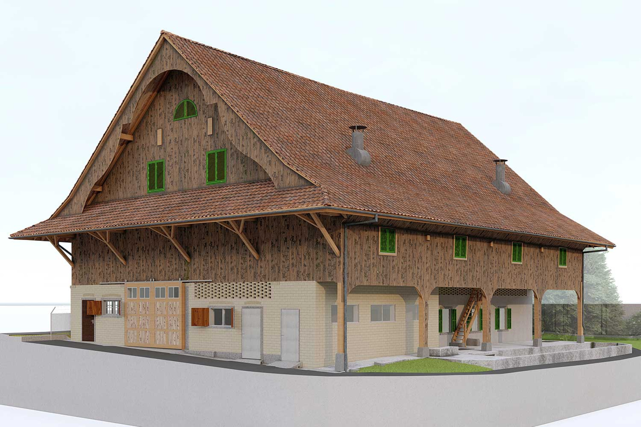 À Greppen (LU), HMQ AG a procédé au relevé topographique d'une grande grange et a modélisé un modèle 3D dans ArchiCAD à partir du nuage de points 3D. La représentation et les détails ont été réalisés selon une norme basée sur le niveau de détail LOD (conformément aux spécifications HMQ) et s'appuient sur la norme SIA 2051. La structuration et la modélisation ont été réalisées dans le système de CAO ArchiCAD; les données sont structurées en objets thématiques.