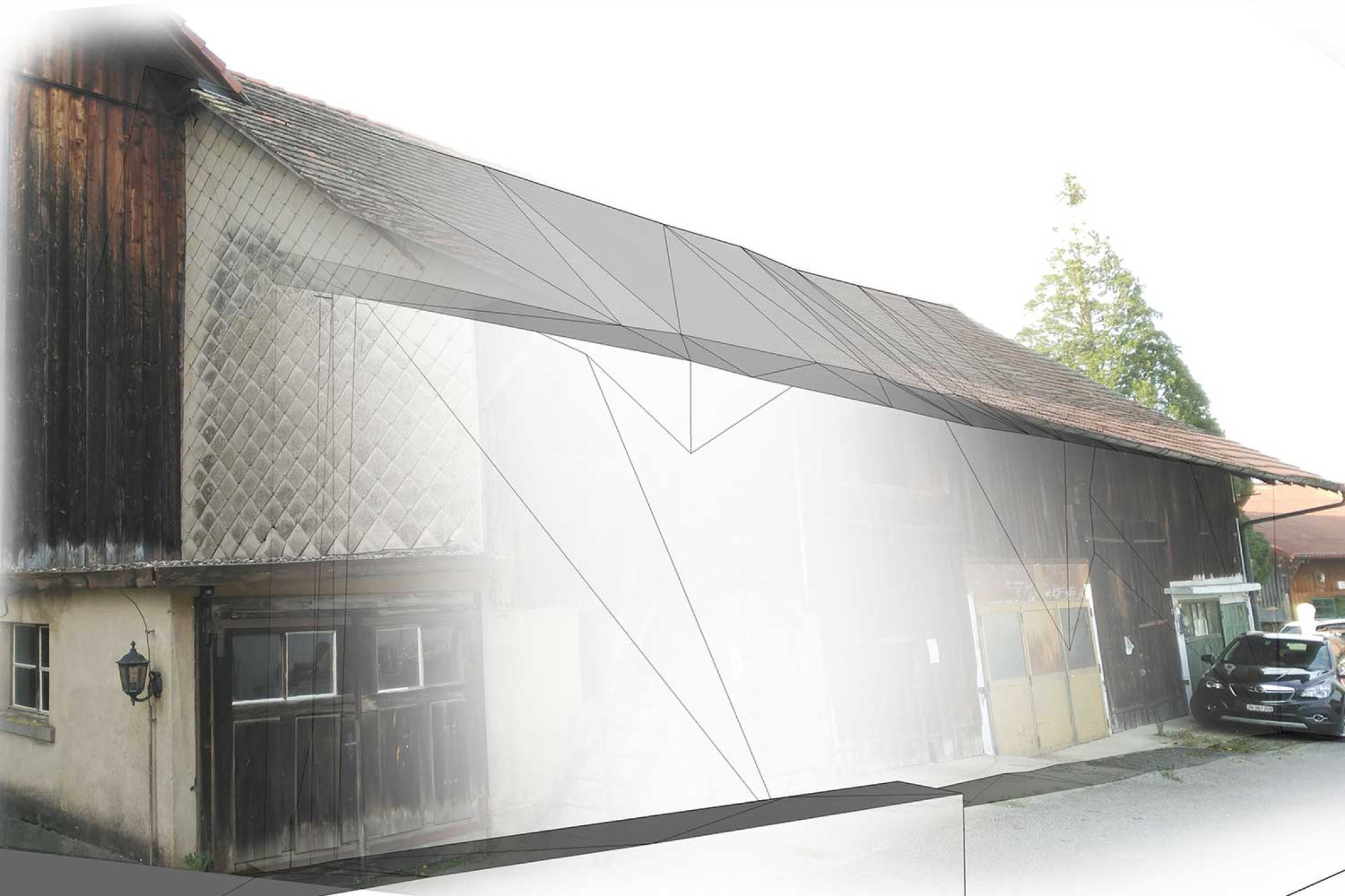À partir d'une grange située à Seegräben (ZH), HMQ AG a calculé le volume de construction à l'aide d'un scan laser 3D. Un modèle CAO 3D a été créé à partir du nuage de points, puis le volume de la grange a été déterminé en mètres cubes. De plus, les vues de façade ont été dérivées du modèle 3D sous forme de silhouettes, à partir desquelles des données de plan 2D ont été créées.