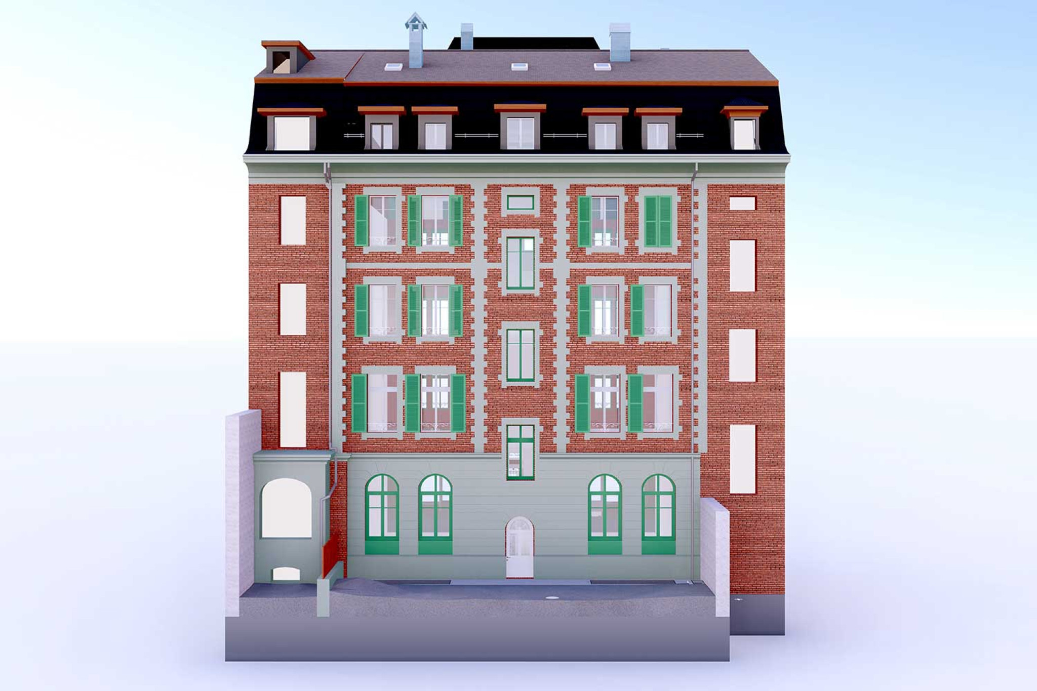 La société HMQ AG a réalisé un relevé d'un immeuble collectif de sept étages à Berne (BE). Le relevé a été effectué à l'aide d'un scanner laser 3D. À partir du nuage de points, un modèle 3D des façades et de l'ensemble des combles, y compris la charpente, a été modélisé dans ArchiCAD.