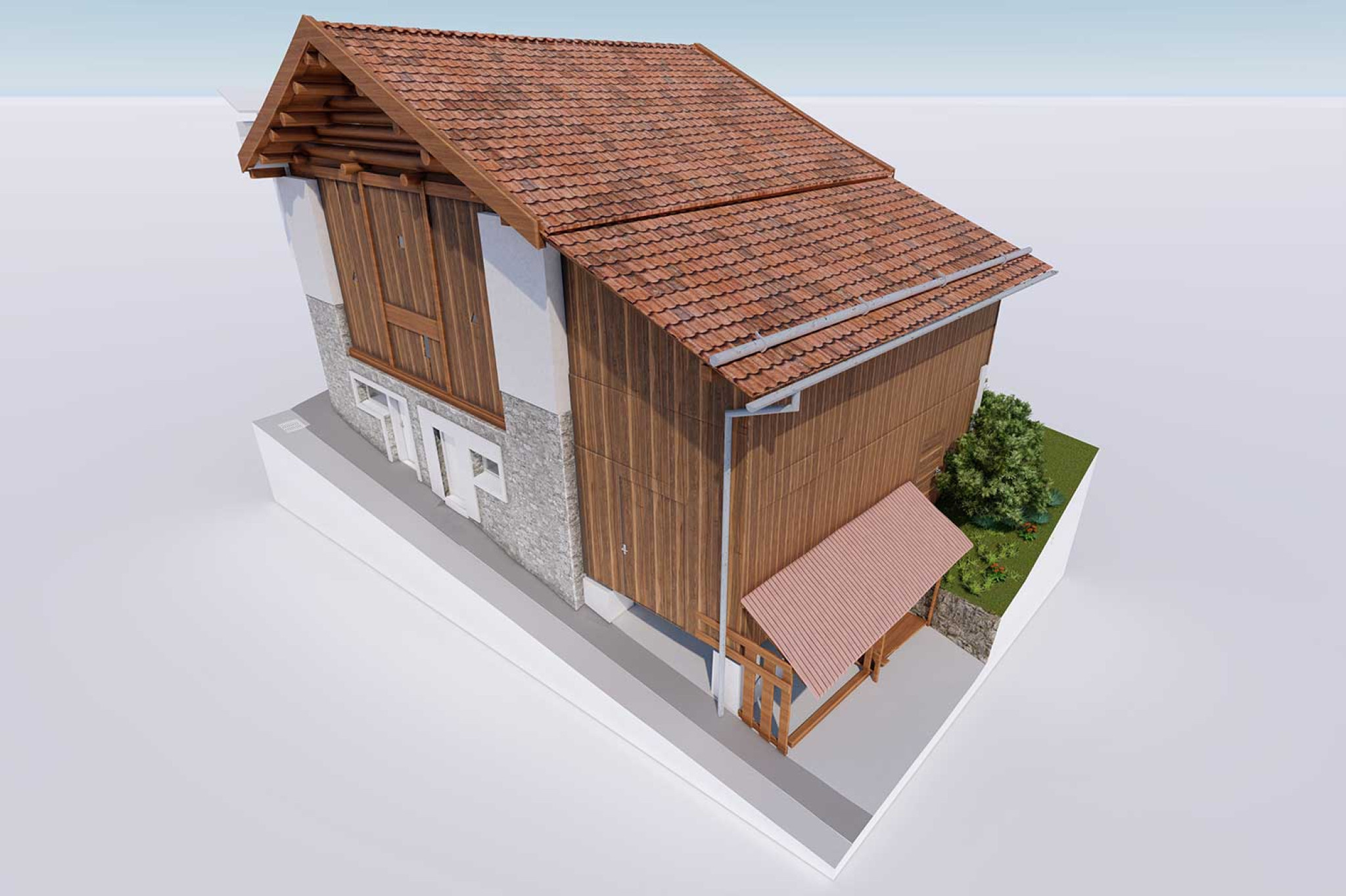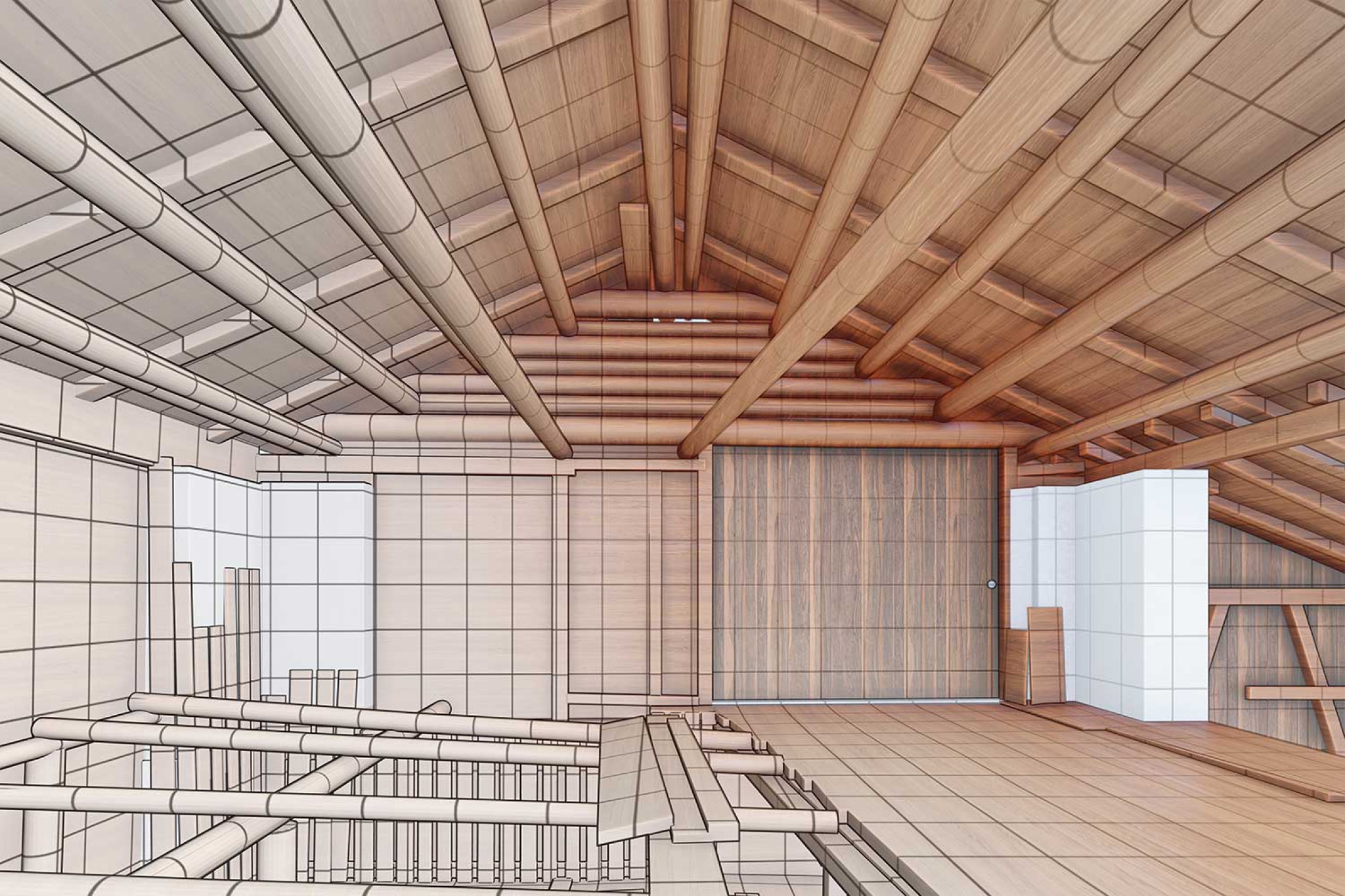 La société HMQ AG a mesuré une grange à Tinizong-Rona GR, dans le canton des Grisons, à l'aide d'un scanner laser 3D et a modélisé un modèle 3D dans ArchiCAD à partir du nuage de points. Les éléments visibles de la géométrie du bâtiment (murs, sol, plafond) et la structure porteuse avec poutres, poteaux, pannes, chevrons, pinces et entretoises ont été évalués.